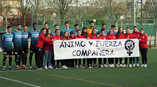 O persoal da SD Logroñés mostrou o seu apoio á súa compañeira cunha pancarta. TWITTER