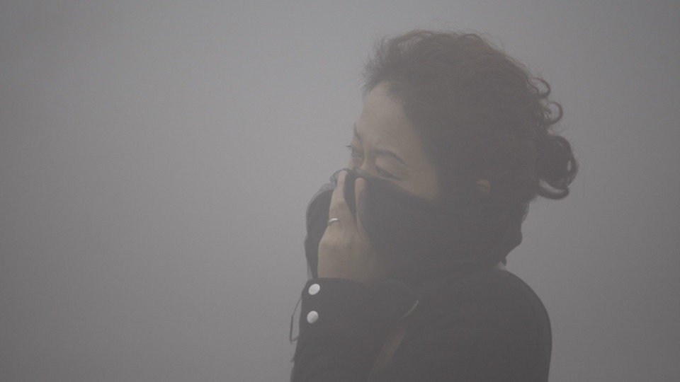 Una mujer se cubre la cara para atravesar una nube de contaminación en China. EFE