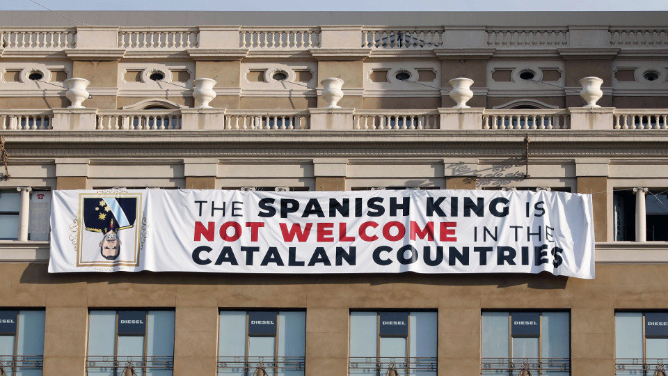 La pancarta, de grandes dimensiones y perfectamente visible desde el lugar donde el Rey asistirá al homenaje a las víctimas de los atentados yihadistas, pone, en inglés The spanish king is not welcome in the Catalan Countries (El rey español no es bienvenido en los países catalanes).