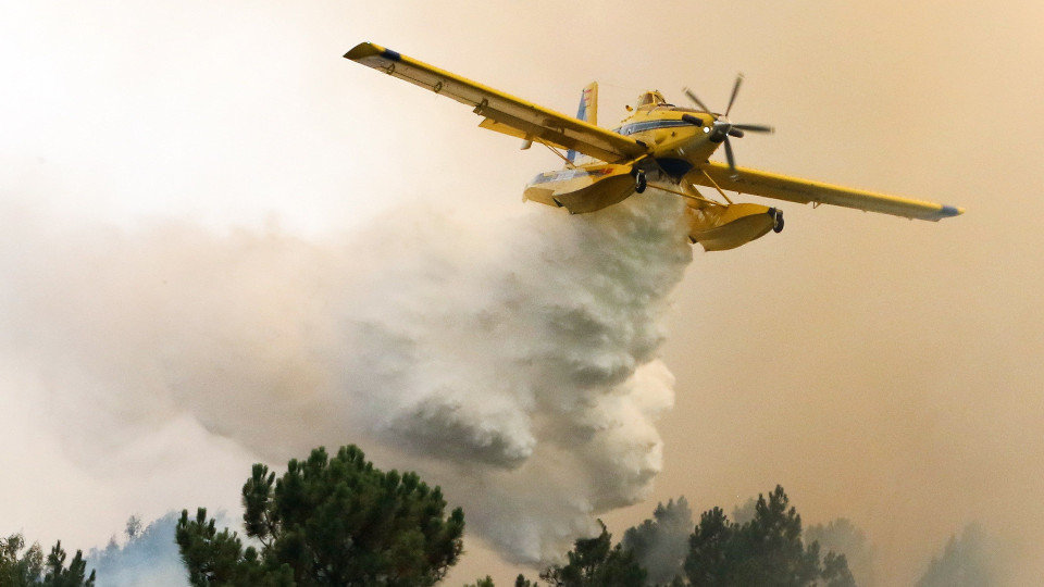 COLABORACIÓN. Los aviones, que han partido en la tarde de este lunes hacia la zona de Vila de Rei, del distrito de Castelo Branco, región de Centro, tienen capacidad para cargar 6.000 litros de agua en 12 segundos planeando sobre el agua y descargar en una o varias etapas.