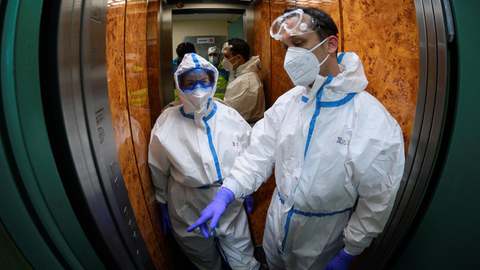 Personal de una Uvi movil durante una intervención en un posible caso de covid en un domicilio en Madrid. EFE
