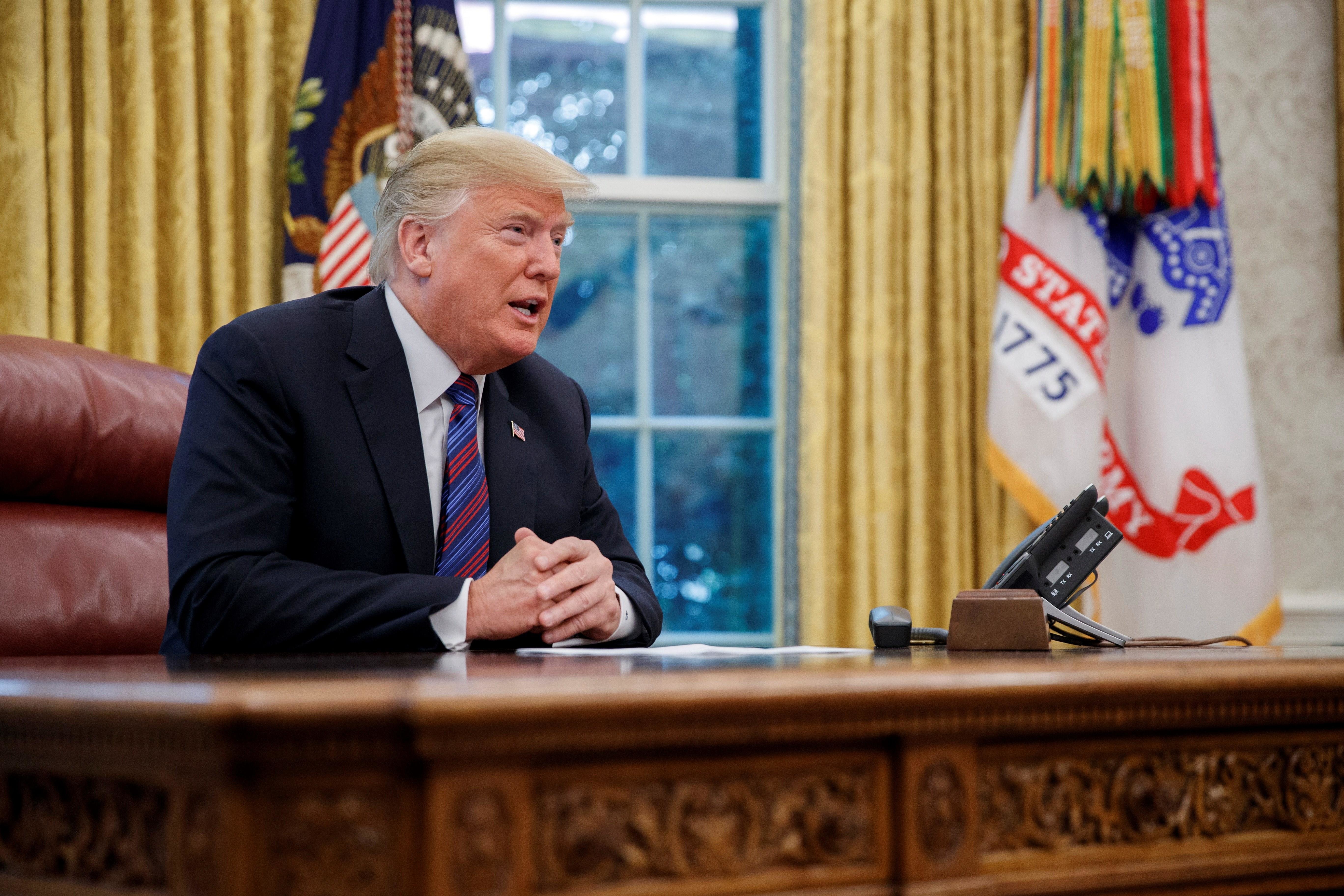 Donald Trump hablando por teléfono con Enrique Peña Nieto. EFE
