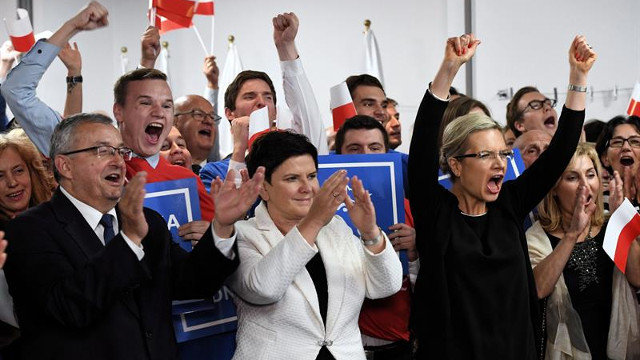Miembros de Ley y Justicia celebran el resultado. EFE