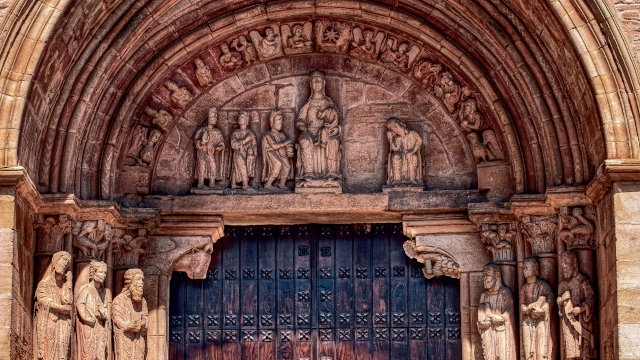 Atraviesa la vega del Órbigo, de la que se tiene una espléndida panorámica desde el castillo, hoy parador. Después sigue hasta el corazón de Benavente, que tiene un casco viejo con bastante sabor y con dos iglesias románicas que son las causantes de esta visita. San Juan del Mercado y Santa María del Azogue bien merecen un desplazamiento, tal cual este, y una parada, tal cual esta. La decoración de las fachadas de cualquiera de las dos es rica y sus interiores austeros y auténticos. Puesto a escoger una figura de cada una de ellas, se queda con el San José de San Juan del Mercado, al que ya se refirió en la introducción, y con una Eva de Santa María del Azogue, vestida tal cual Dios la trajo al mundo, es decir, desnuda.