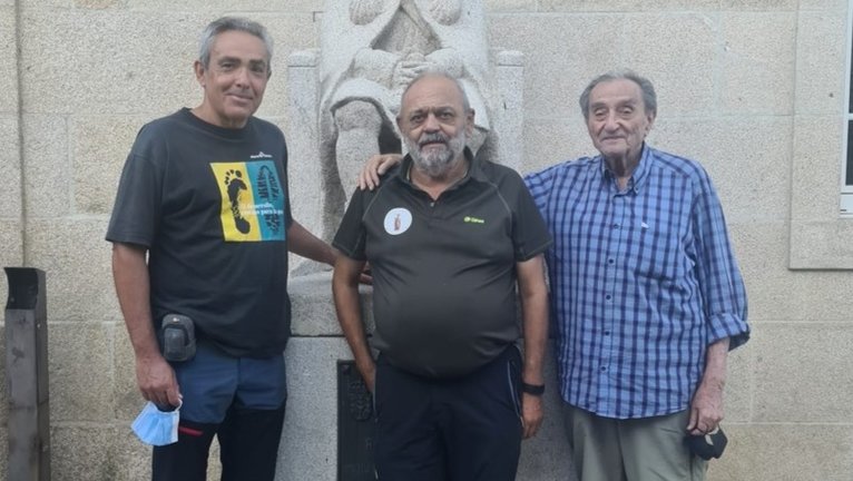 El peregrino nonagenario, junto a su hijo y Jorge López.EP