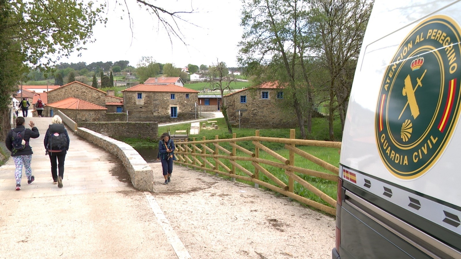 "Se trata de un servicio itinerante. Vamos a zonas donde se prevé que pueda haber masificación o a puntos estratégicos como un final de etapa, donde ofrecemos nuestro servicio de control y ayudamos a los peregrinos en lo que necesiten, sea presentar una denuncia, realizar una gestión o, incluso, recibir primeros auxilios", explica el agente Antonio Amor, miembro de la Oficina de Atención al Peregrino que estos días se desplegaba por el tramo entre Arzúa y Melide.