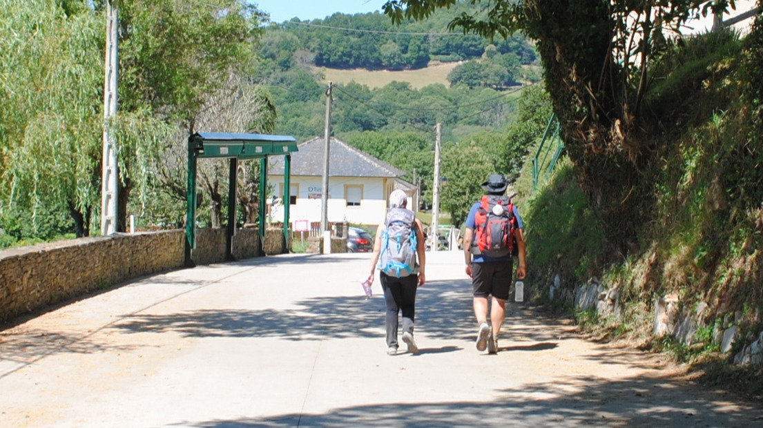 Unos peregrinos, a su llegada a la localidad de Triacastela. AEP