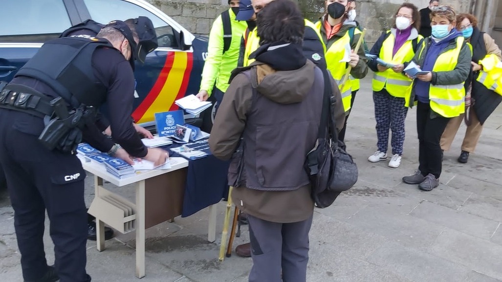 Las patrullas se organizaron para acompañar a los peregrinos, que comenzaron la jornada en la Praza de Santa María, al lado de la catedral. Los agentes —encabezados por el delegado de Participación Ciudadana de la comisaría lucense— instalaron además en ese lugar un puesto informativo y sellaron las más de 200 credenciales de los participantes. Igualmente, repartieron medio centenar de credenciales de la Policía Nacional.