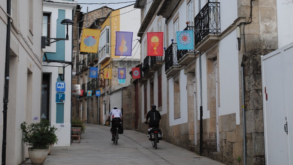 Peregrinos en bicicleta a su paso por Sarria. PORTO