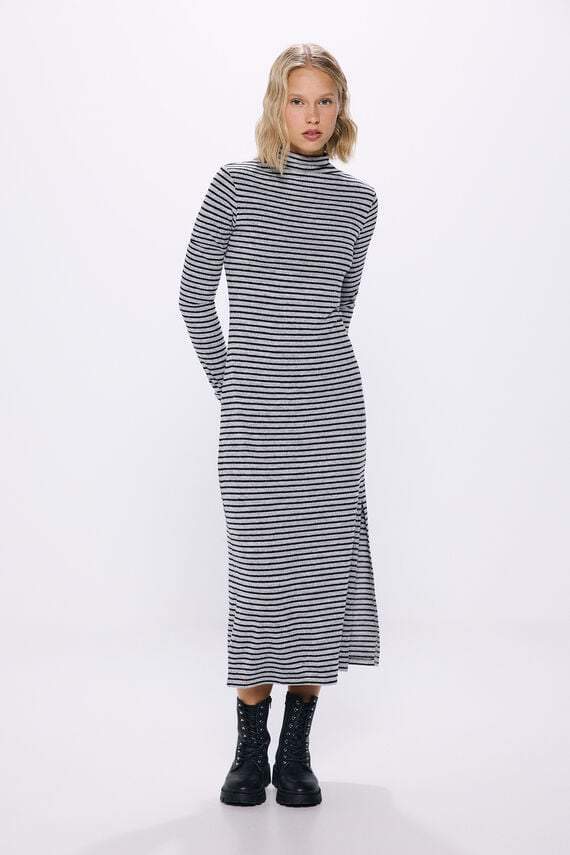 Vestidos de punto. Un clásico de la temporada invernal, ya que su composición es ideal para abrigarte en los días un poco más fríos. Están hechos de materiales elásticos que se ajustan al cuerpo, proporcionando una silueta favorecedora. Puedes encontrarlos en tiendas como Springfield, donde disponen desde modelos ajustados hasta otros más sueltos y cómodos, muy apropiados para el uso diario o para una salida informal.
