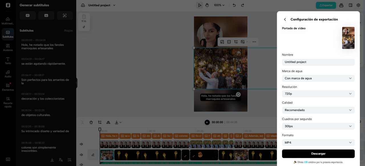 Edita subtítulos manualmente, añade texto y ajusta tamaño, color o alineación. Prueba filtros, efectos, música de fondo y elimina el fondo para remodelar cada escena. Ajusta hasta que cada parte encaje con tu narrativa.