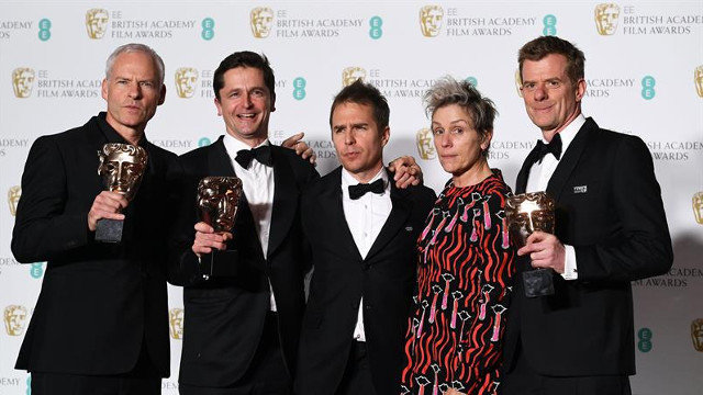 Mejor película, mejor actriz (Frances McDormand), mejor actor secundario (Sam Rockwell), mejor guion original y mejor película británica fueron las cinco categorías en las que se impuso Tres anuncios en las afueras, a la que siguió por número de premios La forma del agua, que se llevó tres, y El instante más oscuro, y Blade Runner 2049, con dos cada uno.