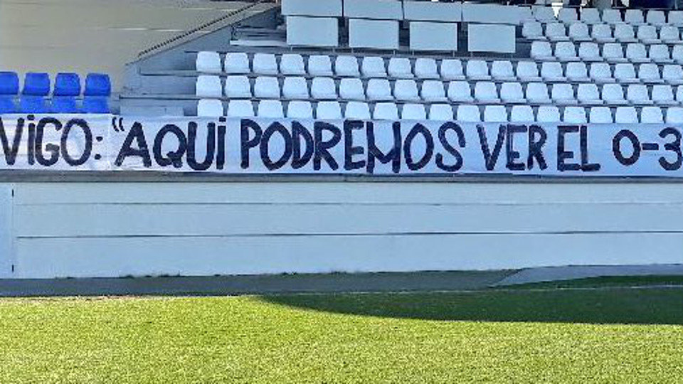 Este miércoles, los aficionados del Deportivo desplegaron otra pancarta, esta vez sobre unas declaraciones de Abel Caballero en noviembre: 'Alcalde de Vigo: "Aquí podremos ver el 0-3 del derbi en Riazor"'.