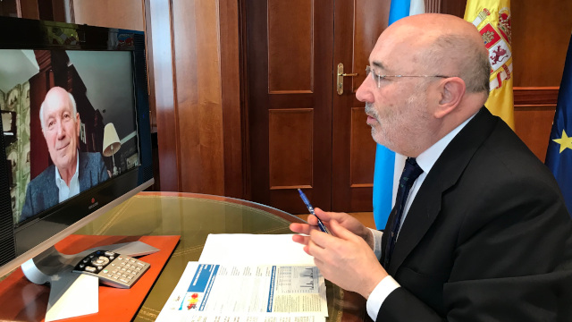 Javier Losada, mantén unha reunión telemática co presidente da Confederación de Empresarios de Galicia, Antonio Fontenla. EUROPA PRESS