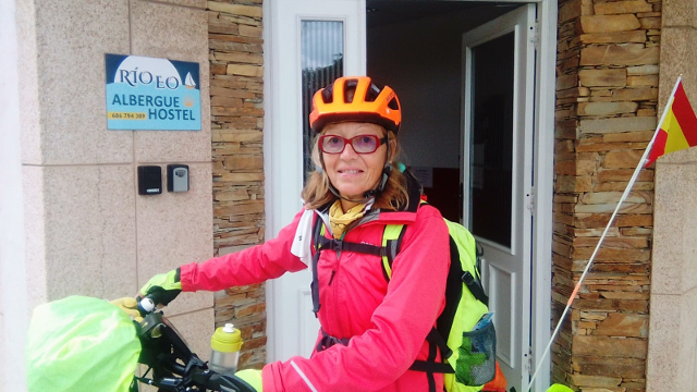 El albergue Hostel Río Eo en Ribadeo alojó a Christine, una peregrina de 66 años de origen francés pero residente en Bélgica que realiza el Camino Norte sola en su bicicleta eléctrica. A su paso por la localidad mariñana llevaba realizados "casi 2.300 kilómetros" y le faltaban casi 300 para llegar a Compostela.
