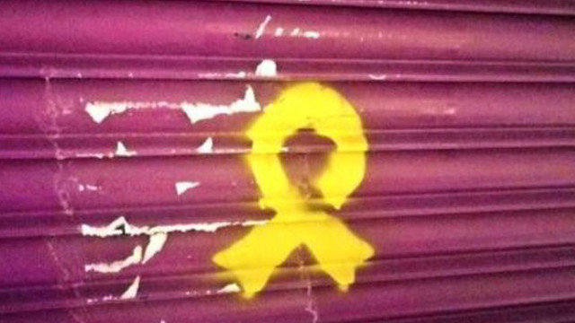 Pintan un lazo amarillo en la verja del negocio de la madre de Rivera