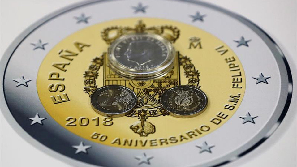 Moneda que conmemora el 50 cumpleaños de Felipe VI. MARISCAL (EFE)