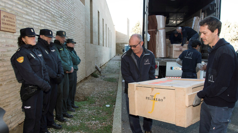 Tal y como ha reseñado, a la delegación aragonesa la recibió el director del centro y su equipo de conservadores, quienes fueron indicando la ubicación de las piezas. El trabajo de embalaje y porte lo ha hecho personal de Aragón.