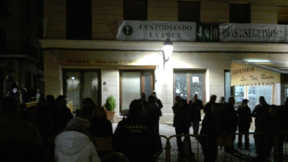 Varias decenas de estos vecinos se concentraron anoche junto a la cruz, en la céntrica plaza de España y al lado de la iglesia arciprestal de San Martín para expresar su rechazo a la inminente retirada.