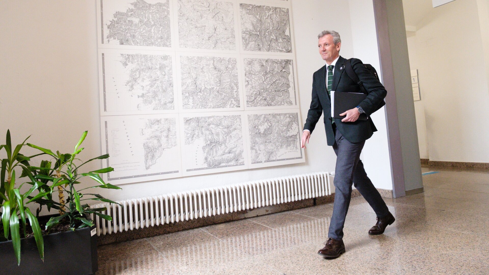 O titular do Executivo galego, Alfonso Rueda, preside a reunión do Consello da Xunta. Sala do Consello, 21/04/25.