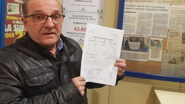 Manolo Díaz, con los números agraciados en el sorteo, en su administración de loterías. C.P.