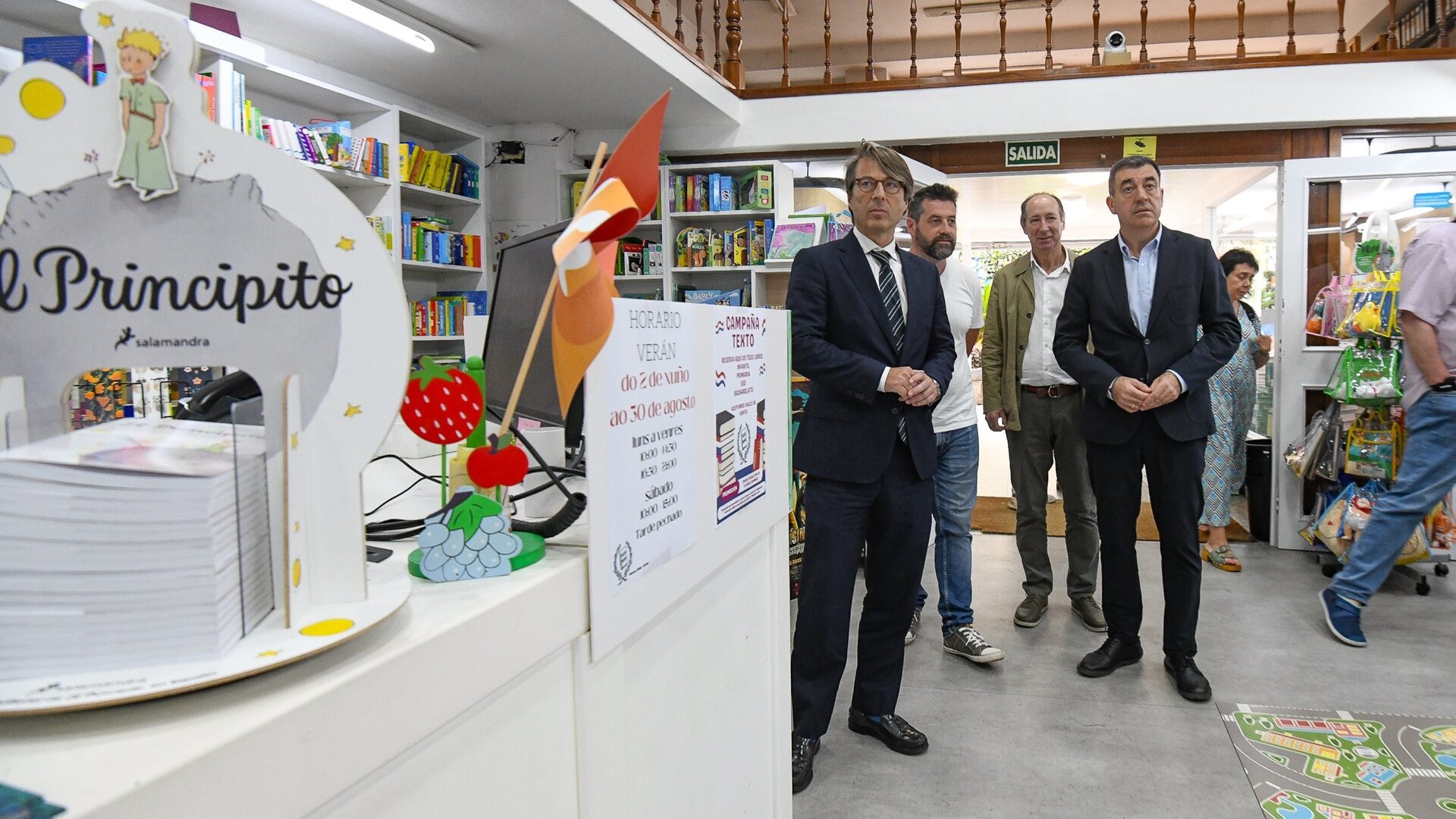 Los conselleiros de Facenda y Educación, en la librería Follas Novas. NACHO SANTÁS