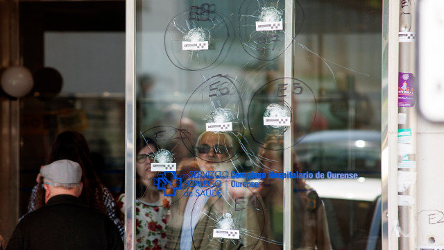 En total, a policía recolleu preto dunha vintena de casquillos de bala e identificou impactos na porta e a fachada do hospital.