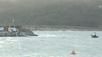 Imaxes do porto de Muxía onde se afundiu o pesqueiro. TVG