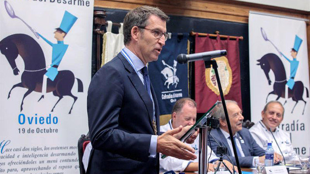 El presidente de la Xunta de Galicia, Alberto Núñez Feijóo, engrosa desde este sábado la nómina de cofrades de honor de la Cofradía del Desarme tras su nombramiento en la celebración del VI Gran Capítulo en Oviedo.