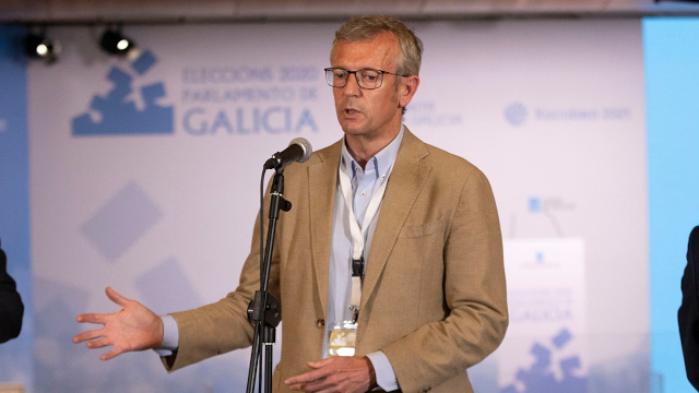 Preguntado, ademais, polas súas opcións de seguir como vicepresidente galego no novo Executivo de Alberto Núñez Feijóo remitiuse ás competencias do titular da Xunta e declarouse "a disposición".
