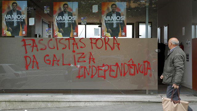 Aparecen pintadas en la sede de Ciudadanos: "Fascistas fóra da Galiza"