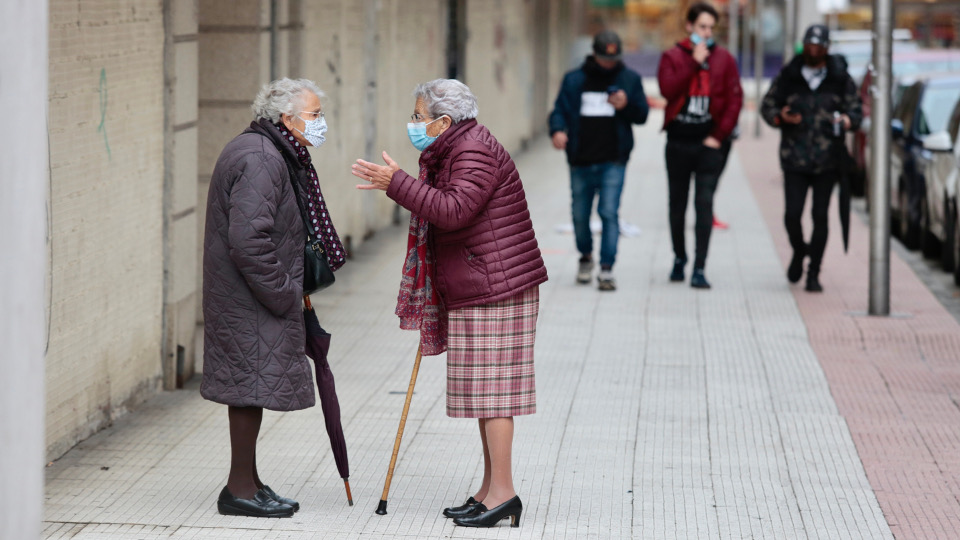 Señoras falando nunha rúa de Pontevedra. GONZALO GARCÍA