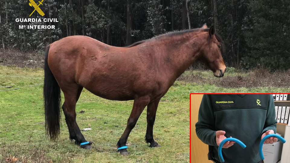 A Garda Civil traballa para identificar e localizar o propietario dun cabalo que foi atopado nun monte de Vilaboa coas patas atadas cunha corda, unha práctica prohibida.