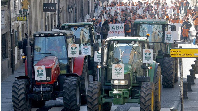 Los socialistas Gonzalo Caballero y Leiceaga arropan la movilización, convocada por Unións Agrarias