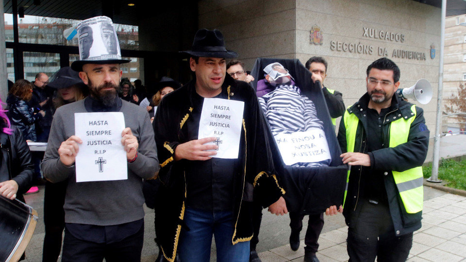 DÍA 8: SEGUEMENTO DO 90%. A Xustiza galega vive o seu oitavo día de folga cun seguimento similar ao de xornadas anteriores que, segundo os sindicatos, ronda o 90 por cento, e que provocou a "paralización" nos xulgados da comunidade, coa suspensión de numerosos xuízos e trámites burocráticos que provocarán "enormes atrasos" –até de "un ano" por semana de folga–.