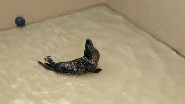 A cría do lobo mariño permanecerá entre tres e catro semanas nun tanque exterior de gran tamaño do IGAFA e será despois embarcada para ser liberada en augas do Gran Sol.