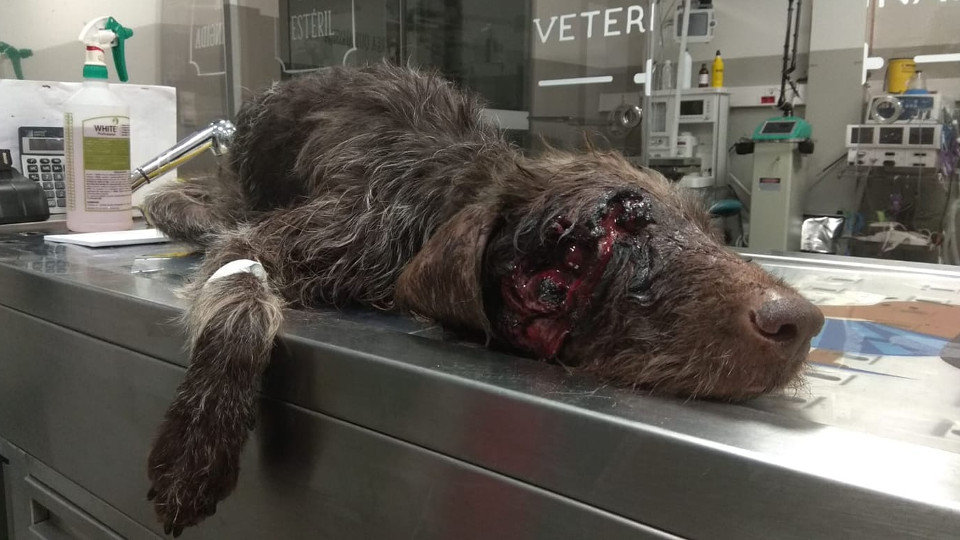 Según confirman ambas organizaciones, el can ya ha sido rescatado y tratado por una protectora local. No obstante, alertan de que, a la espera de futuras valoraciones que puedan realizar los veterinarios, perderá un ojo dada la gravedad de la herida de bala.