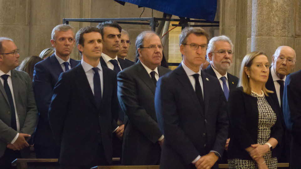 En la misma línea se ha manifestado el nuevo presidente del PP, que ha destacado la humildad de Fernández Albor como una de sus principales características y que además le permitió plantear "el galleguismo cordial" que hoy es uno de los pilares del PP. "Dije que tanto Alberto Núñez Feijóo como el Partido Popular de Galicia para mí eran una referencia y por eso es muy acertado que el primer día como presidente del PP vuelva aquí, aunque sea en circunstancias no muy felices porque es un funeral de una persona muy querida, pero demostrando que ese compromiso lo voy a cumplir", concluyó Casado antes de entrar a la basílica compostelana.
