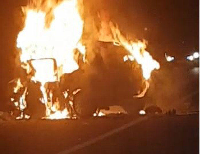 En el accidente se vieron implicados un Fiat Punto que circulaba en dirección Monforte y un Opel Corsa que viajaba en sentido contrario y que resultó calcinado.