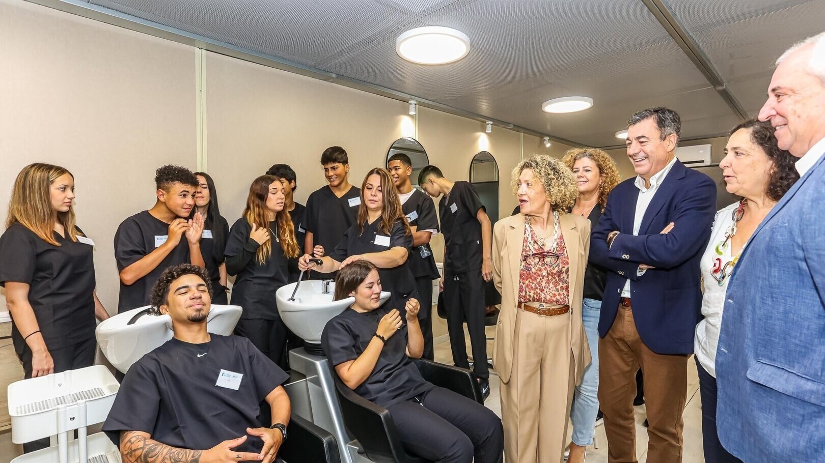 Los futuros esteticistas y peluqueros, que hacen esta semana sus pinitos con sus compañeros como modelos, utilizaron lavacabezas, secadores y demás equipo sin problema alguno. Y en este sentido cabe destacar el carácter 'autárquico' de la FP gallega, que hace gala de una simbiosis total: diseño, acondicionamiento e instalación de los suministros —fontanería, electricidad y climatización— corrieron a cargo de alumnos de FP del CIFP As Mercedes de Lugo.