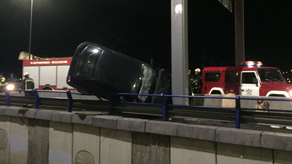 Los tres ocupantes sufrieron heridas cuando viajaban en dirección al centro de la ciudad y, por motivos que se desconocen, el conductor perdió el control del vehículo y este acabó volcado sobre una barandilla que separa el paso elevado de un carril inferior.