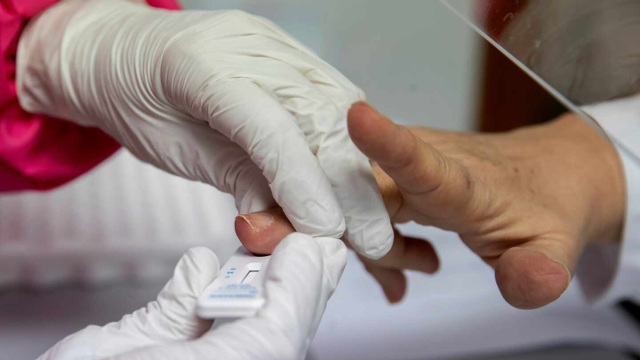 Una enfermera hace un test rápido a un hombre para ver si es portador del coronavirus. EFE/Marcial Guillén