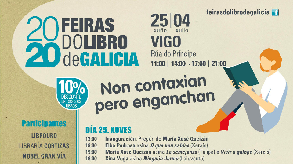 Baixo a lema "Non contaxian pero enganchan", a feira conta este ano tan atípico con só seis librerías aínda que pola feira, nas inmediacións do Museo Marco, pasarán ata 55 autores, entre eles Elba Pedrosa, Emma Pedreira, Manuel Bragado ou Antón Patiño.