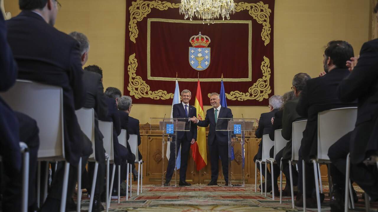 En una jornada que el presidente de la Xunta calificó de "histórica", la tirantez que marca las relaciones entre Gobierno gallego y Estado dio paso el 9 de abril —cuando se selló la transferencia en Santiago— al entendimiento y el ministro de Política Territorial, Ángel Víctor Torres, tendió la mano para explorar nuevas cesiones, pues al contrario que en el caso de su predecesor, Alberto Núñez Feijóo, Alfonso Rueda ambiciona mayores cuotas competenciales