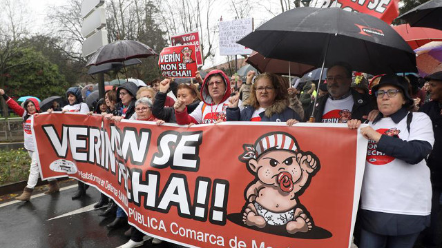 'Verín non se pecha' foi un das lemas máis repetidos e que soou con máis forza na compostelá Praza da Quintana, onde se leu un manifesto no que SOS Sanidade Pública asegurou que esa concentración se facía eco "de todos os territorios aos que se lles están negando os seus dereitos". Nesa liña, a plataforma referiuse a ese caso como mostra de "discriminación ao rural".