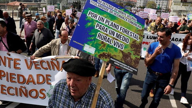 Los manifestantes han entonado consignas en contra de la Xunta y de la "privatización" de sus tierras