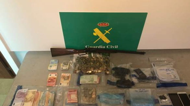 REGISTRO. A continuación, la Benemérita, a instancias del juzgado de instrucción número 2 de Verín y con el apoyo de la Comandancia de Ourense, registró el domicilio del detenido y se incautaron de 70 gramos de cocaína, 50 de heroína y diferentes útiles para la manipulación y distribución de droga. Además, también descubrieron que el arrestado poseía en su casa una pistola de calibre 6,35 y un rifle de calibre 22, así como 15.000 euros en metálico.