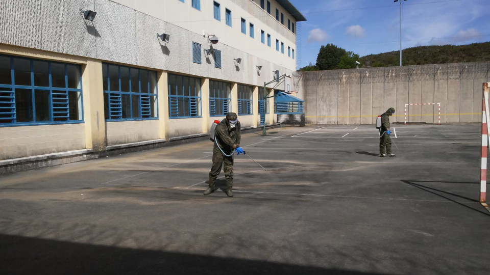 Tarefas de desinfección na prisión da Lama, a principios do mes de abril. CEDIDA