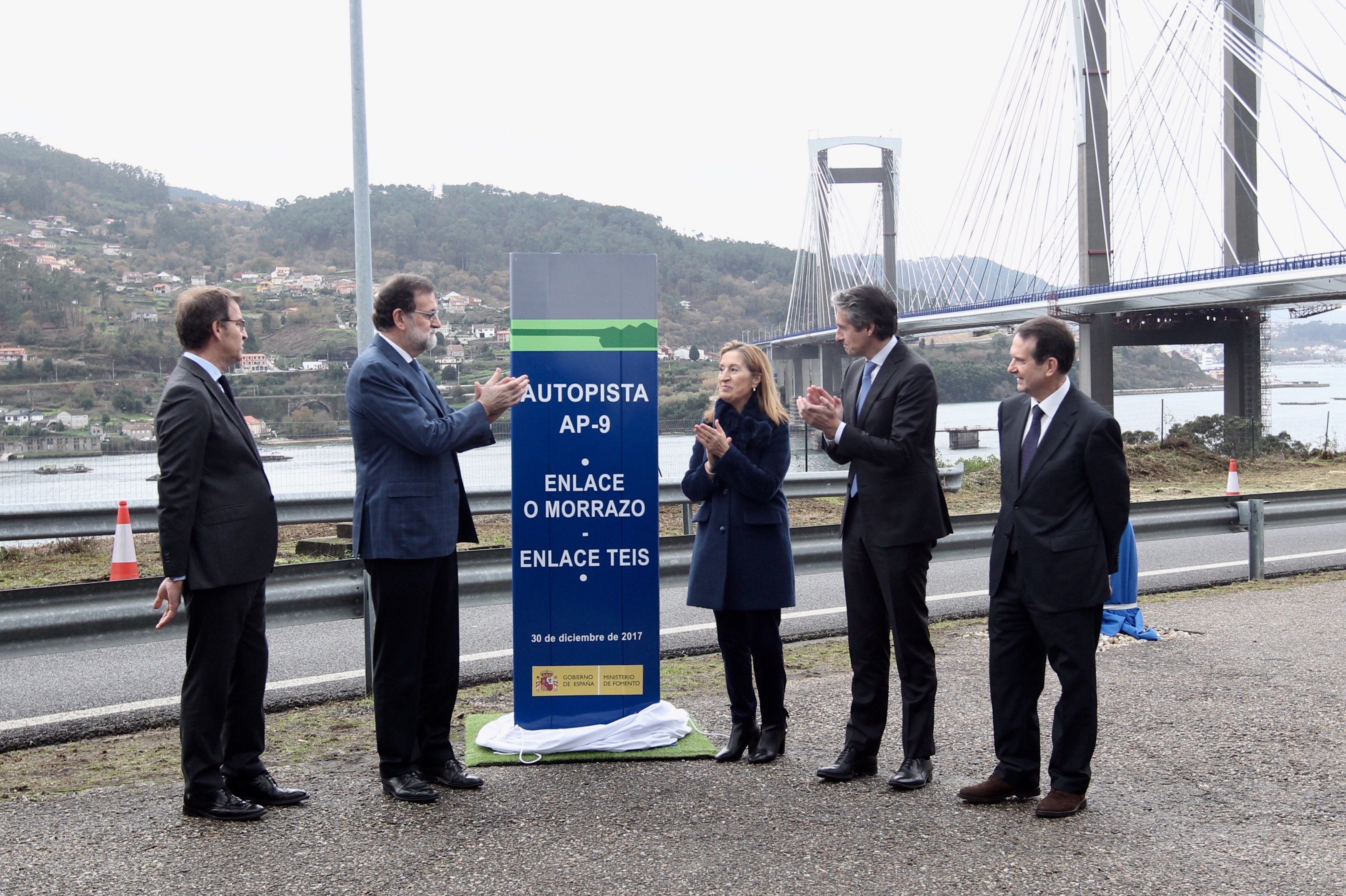El presidente del Gobierno, Mariano Rajoy, acompañado del presidente de la Xunta, Alberto Núñez Feijóo, y de otras autoridades, ha inaugurado este sábado las obras de ampliación de capacidad de la autopista AP-9 entre O Morrazo y Vigo, que incluyen los nuevos carriles del puente de Rande, sus 'alas'. "Dificilmente se puede despedir mejor 2007 que con el privilegio de inaugurar la ampliación de puentes que nos unen y nos separan", destacó el jefe del Ejecutivo estatal, para a continuación reivindicar el carácter "pionero" de la infraestructura. "En 1978 fue el puente atirantado de mayor longitud construido en el mundo y hoy vuelve a ser pionero, porque es el primero de estas características que ha afrontado una obra de este calibre manteniendo el tráfico", recalcó.