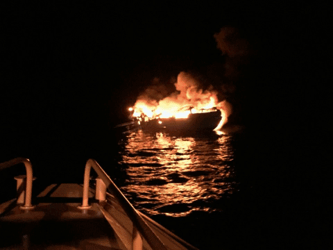 Fueron localizados cuando empleaban la balsa salvavidas y abandonaban el barco, que se incendió mientras se hundía